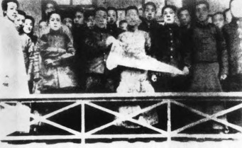 (1919年五四运动期间,赵世炎参加集体活动的照片,左一为赵世炎)