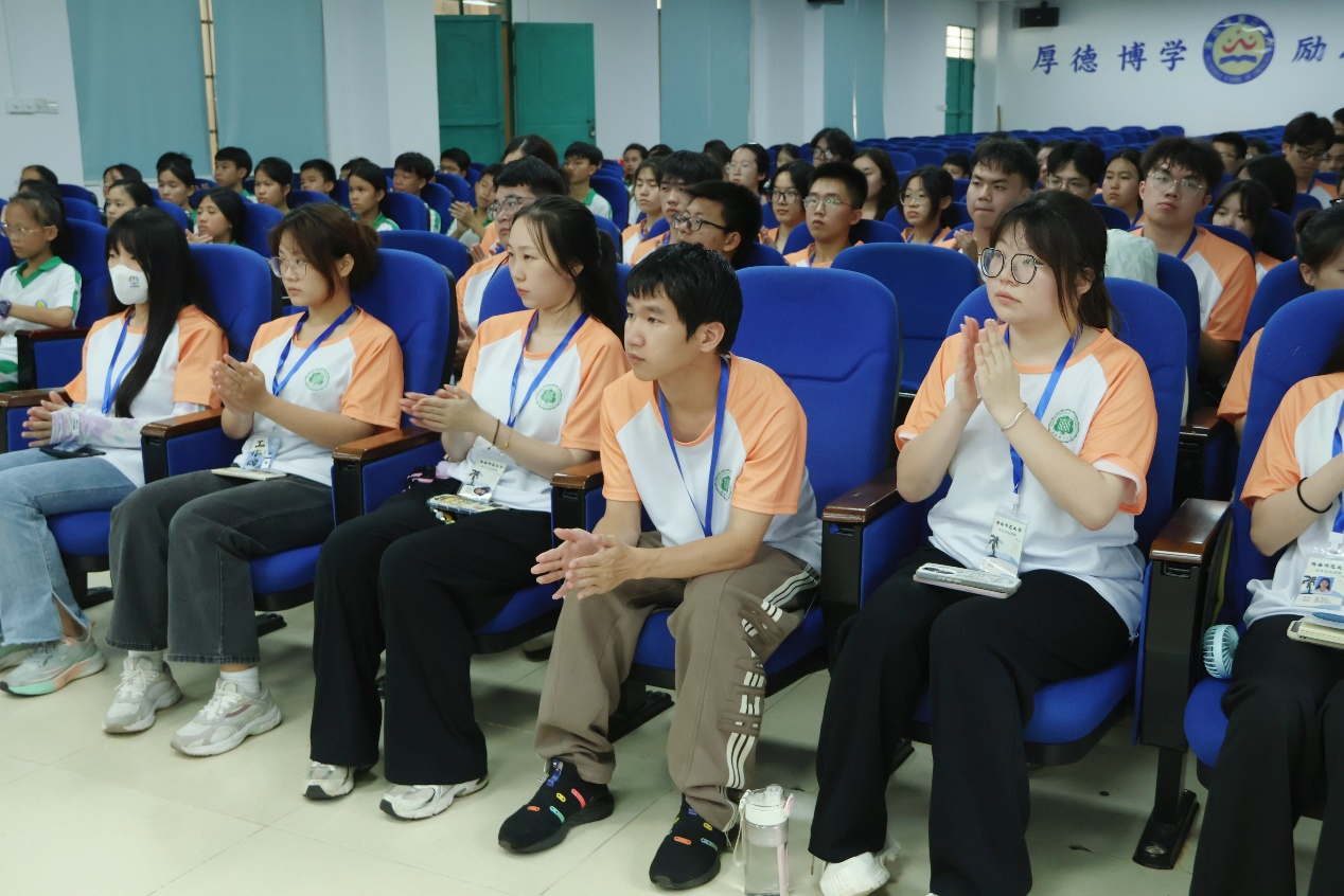 会议第三项,由带队老师郭雷鸣进行发言。郭雷鸣老师首先肯定了志愿者老师们过硬的综合素质与出色的个人能力,并强调历史文化学院党政领导班子对此次支教活动高度重视,传达了历史文化学院对澄迈二中同学们的关心与问候。接着,他感谢了学校副校长及后勤老师对三下乡支教团队的大力支持与帮助,并称赞了在座同学们良好的精神面貌。最后,郭雷鸣老师希望澄迈二中的同学和支教老师在接下来几天的三下乡支教活动中敢于吃苦、互相学习、有所追求、共同进步,并预祝本次三下乡支教活动取得圆满成功。