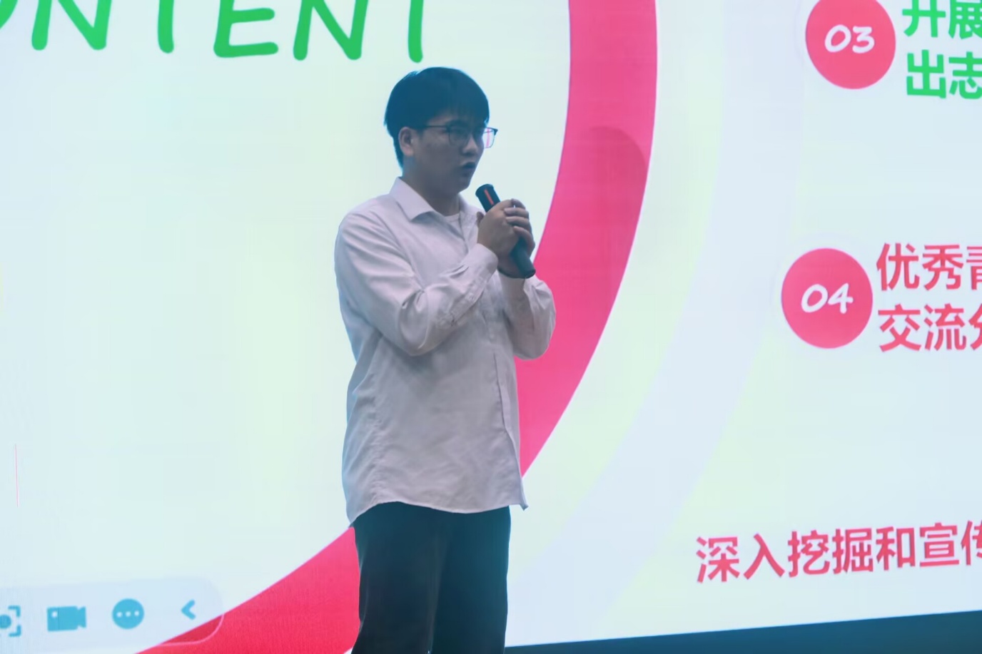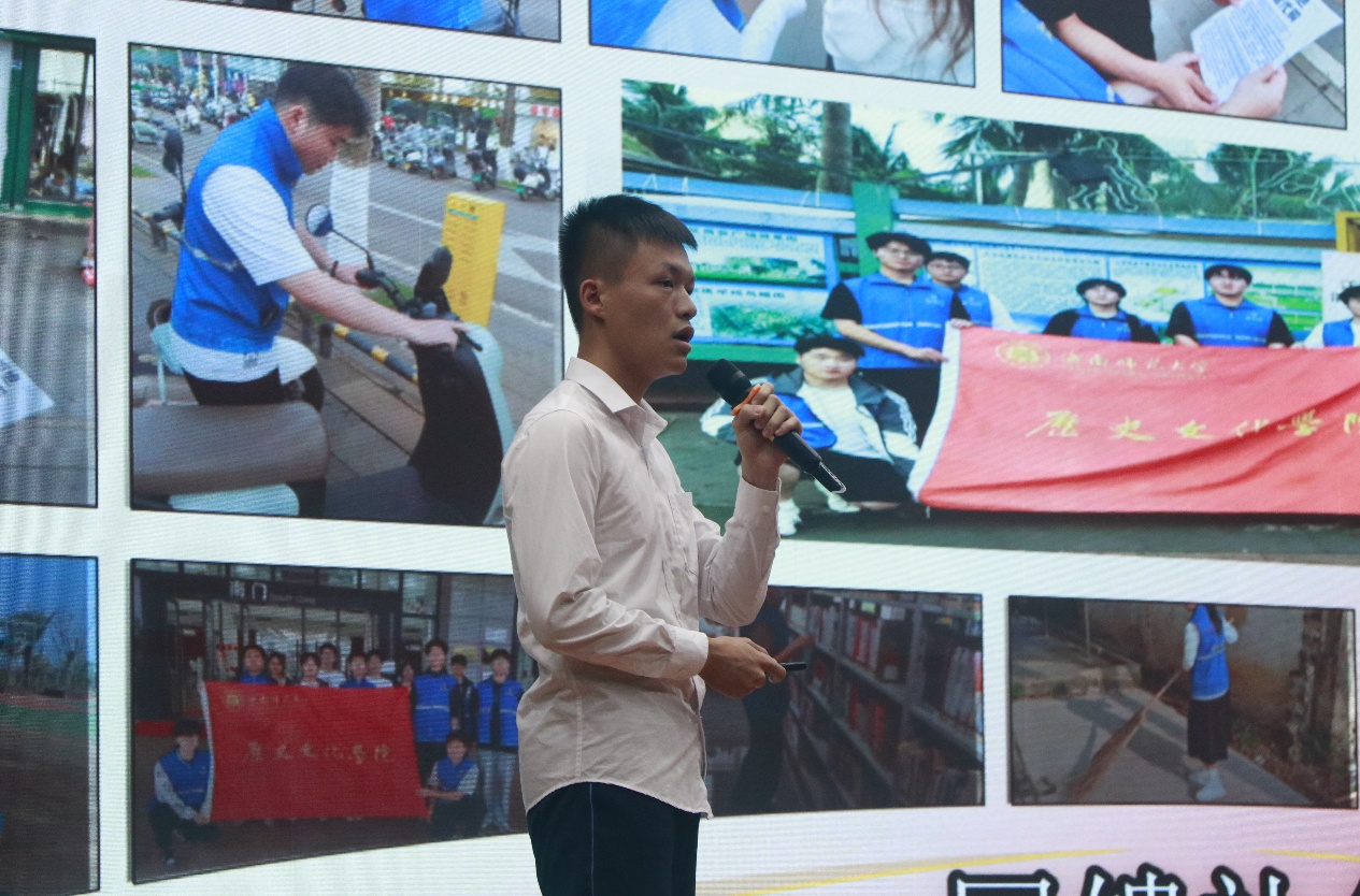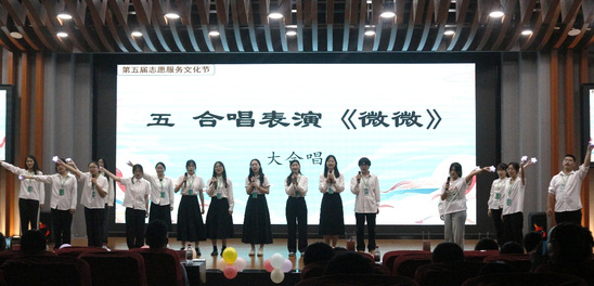 在获奖结果公布之前,邱艺蓉同学代表优秀志愿者进行发言。她说每个人的力量或许微小,但无数志愿者的微光汇聚就能照亮更多,志愿服务从来不是单向的给予,而是双向的治愈。我们付出的汗水,最终会浇灌出自己的成长。同时她呼吁大家继续带着这份初心,在志愿服务的道路上坚定前行。在此之后,青年志愿者协会的大合唱《微微》紧接着上场,他们的歌声宛转悠扬,仿佛将点点温暖汇聚成照亮人心的光芒。