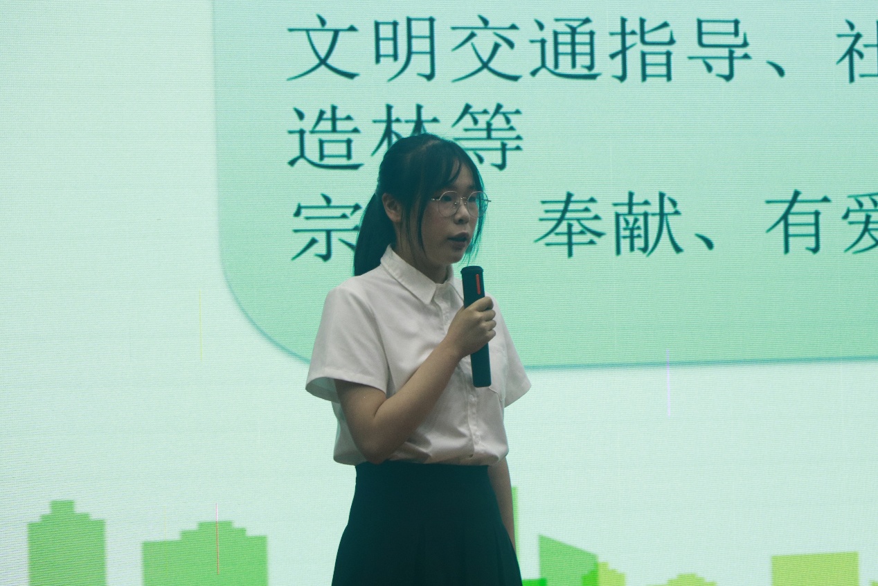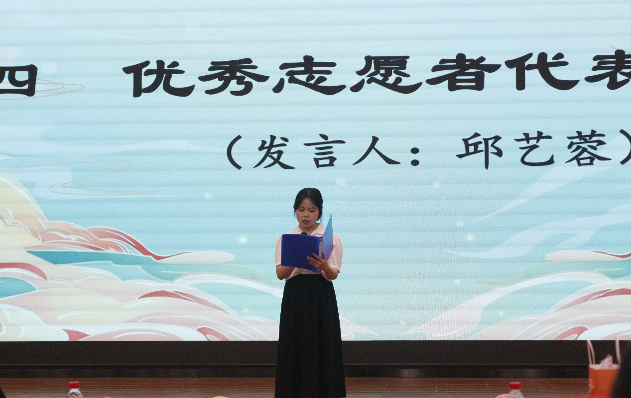 (刘珊珊同学为优秀班级志愿服务队二等奖颁奖)