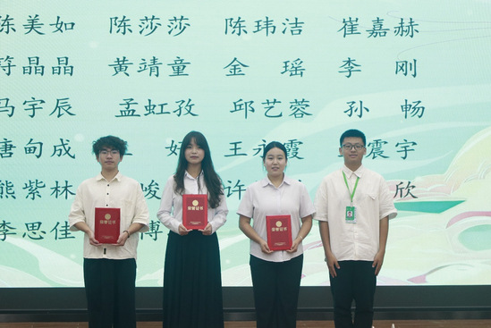 (陈莎莎同学为优秀个人金奖代表颁奖)