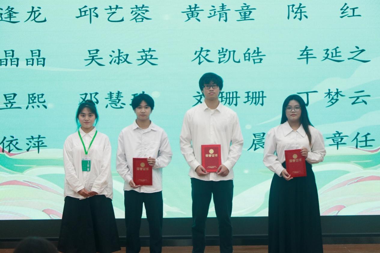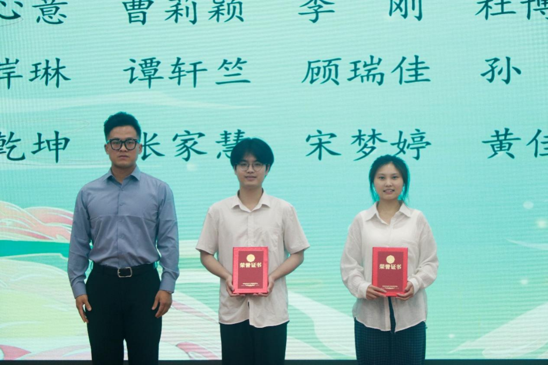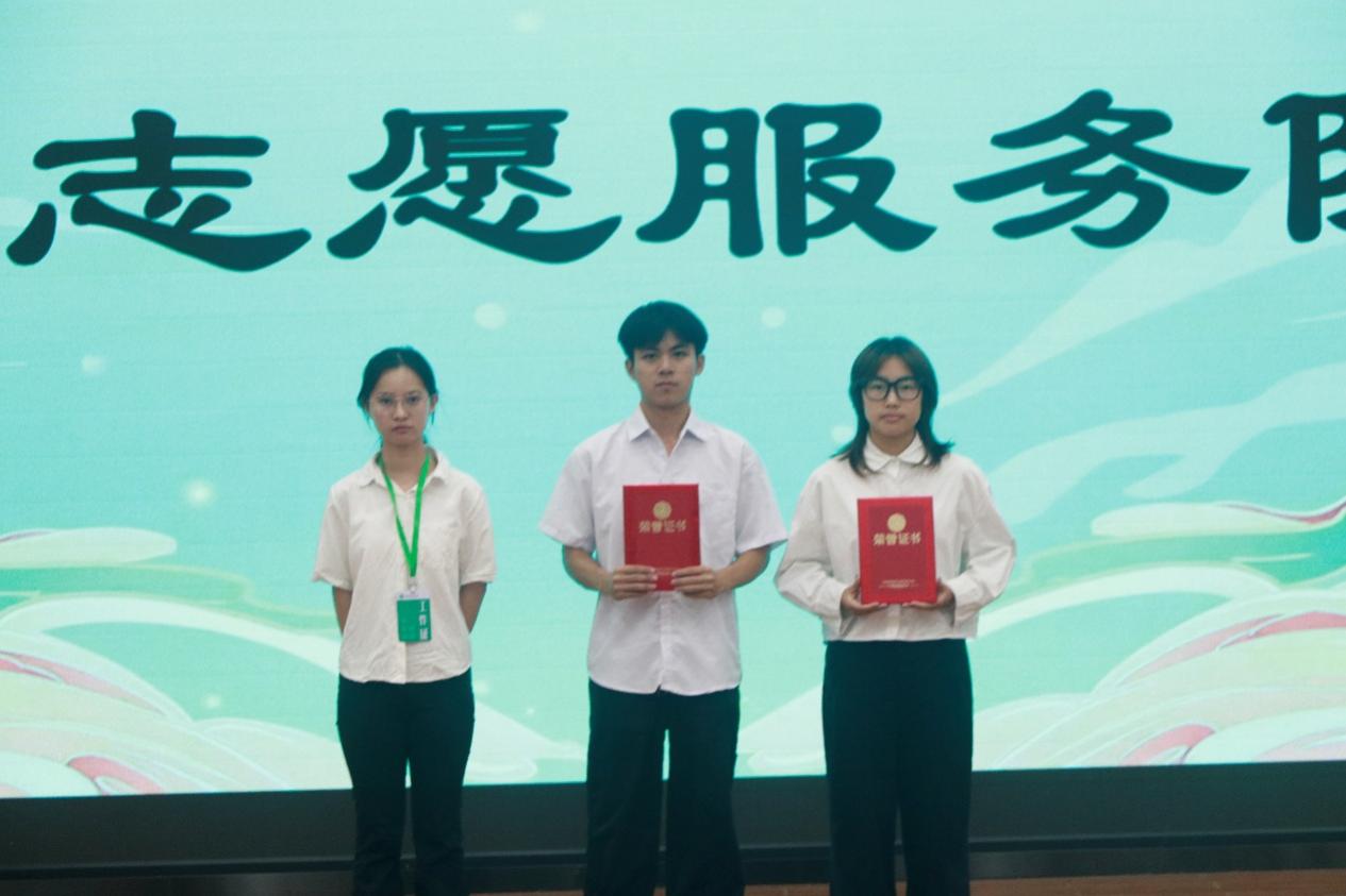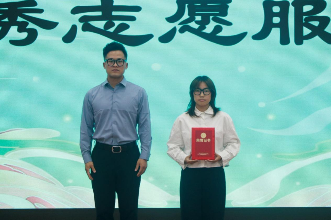 (阎智鑫、路美琳同学为优秀青年志愿者代表颁奖)