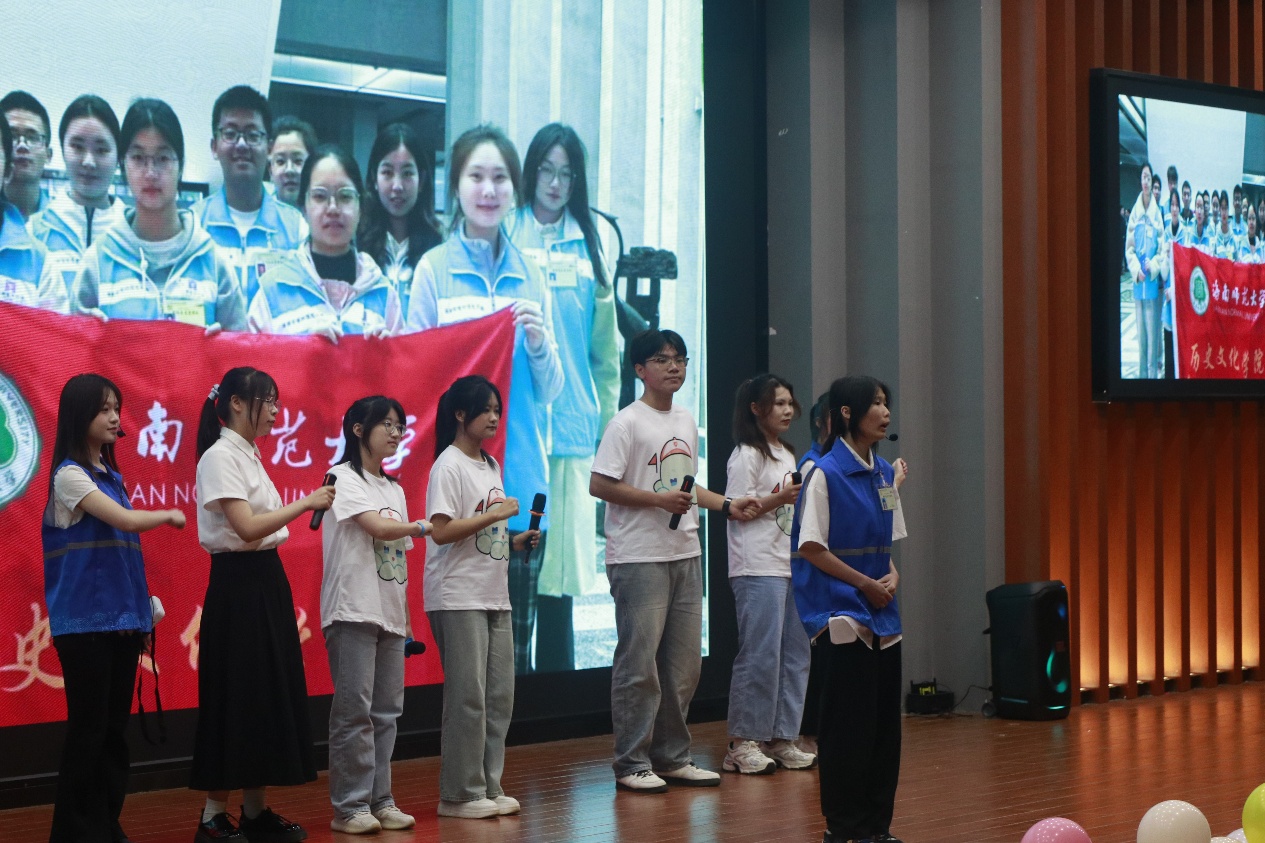 在第二篇章“炬火成光,薪火永传”中,由2023级历史1班、2023级历史2班及2024级历史1班进行班级志愿工作汇报表演,在情景剧与诗朗诵中展现青春志愿风采。除了汇报表演外,各篇章之间还穿插着激动人心的抽奖环节与智力问答环节,通过一个个问题同学们对志愿服务有了更深的认识。