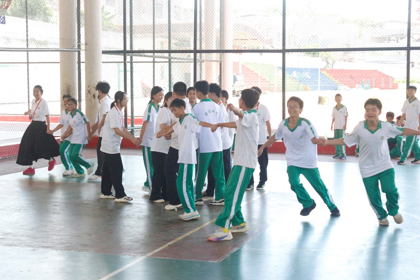 课堂上,老师们带领同学们学习舞蹈《小城夏天》,吴淑英、全可欣两位老师采用数八拍的方式分解舞蹈动作,通过言传身教对学生进行细致指导,同时结合慢动作示范帮助学生理解动作要领,让同学们快速掌握舞蹈内容。而在“‘趣味无限’趣味运动”课堂上,老师则带领同学们玩转“渔网抓人”小游戏。课程内容不仅锻炼了同学们的反应能力与团队协作意识,更以轻松的形式点燃了大家对体育运动的热情。