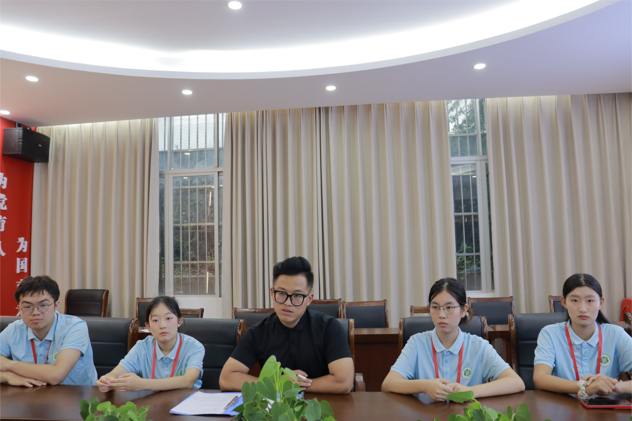 随后,带队老师郭雷鸣对蔡兴强书记的发言作出回应。郭雷鸣老师首先对澄迈二中对于本次三下乡支教活动给予的大力支持表示感谢。此外,他提到,为进一步深化双方合作、促进共同发展,在后续的三下乡活动中,将充分依托专业优势,结合澄迈地方特色,深入推进研学结合,争取带领更多的同学走出课堂,走进田野,走进革命文化遗迹,推动革命精神进一步融入学生成长成才,助力学生德智体美劳全面发展。