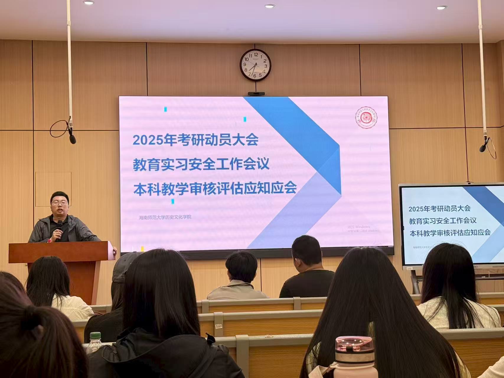 为帮助2022级同学精准把握考研动态,科学规划备考方案,2025年9月7日晚,海南师范大学历史文化学院在第二公共楼111教室成功举办2025年考研动员大会。学院班主任程涛老师担任主讲,2022级全体学生参会。