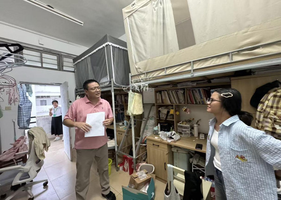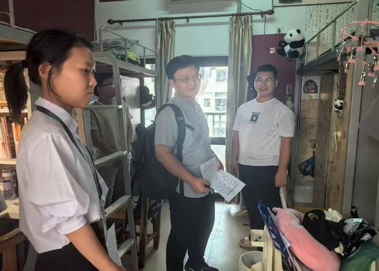新学期伊始,为进一步了解同学们的返校适应情况,倾听大家的真实需求,海南师范大学历史文化学院于2025年9月7日开展了本学期的宿舍走访工作,历史文化学院党委书记王志强、党委副书记王国英、副院长赵从胜、副院长武刚(挂职),辅导员郭雷鸣、伊鑫迪,班主任张登璨、吴晓美、史晓东、王奋举、程涛、孟二壮以及部分学生干部参与了本次活动,带着关怀与期许走进每一间宿舍,与同学们进行面对面的交流。