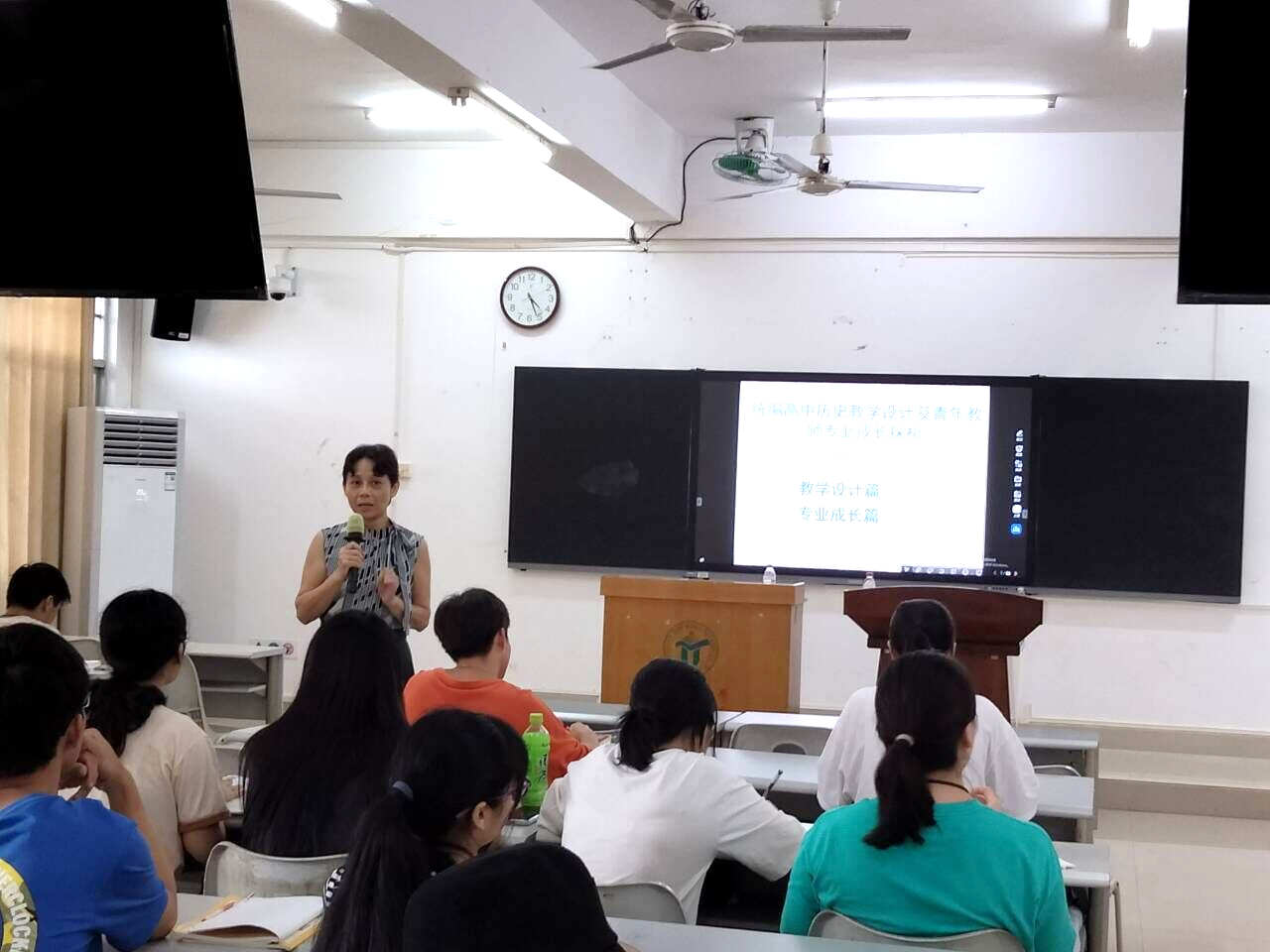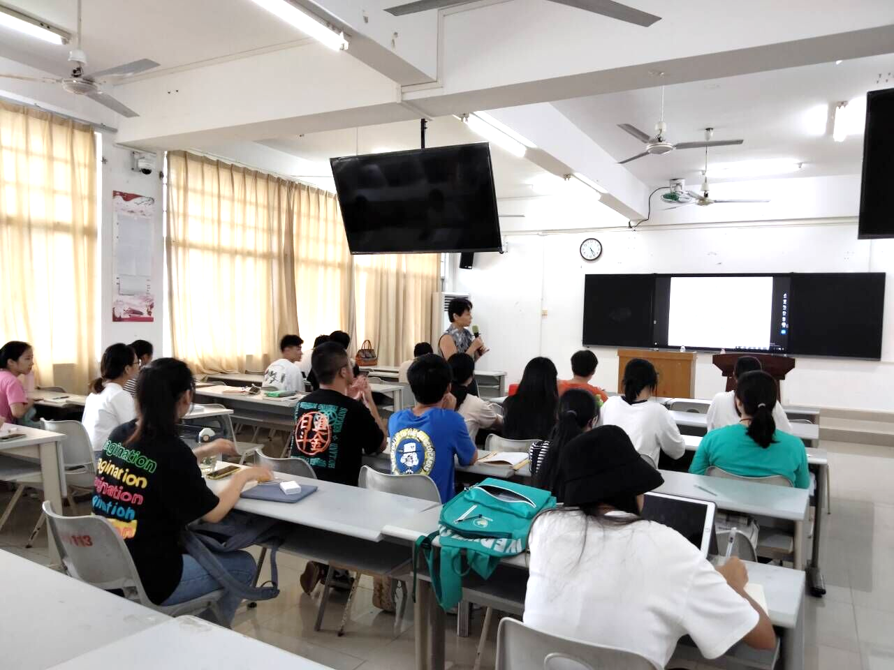 9月24日下午4点25分,我院于公共教学楼609教室开展了“教育实习工作闲谈”专题讲座,本次讲座我院邀请到了来自海口市国兴中学的周剑容老师为同学们进行讲解,2018级全体学生参与此次讲座。