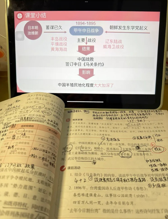 这也让我彻底抛掉了不切实际的幻想——在这里,教学不能追求表面的热闹与流畅,而是要沉下心来,付出加倍的耐心与努力。因此,我格外强调对课本的回归,带着学生一个知识点、一个知识点地分析,要求他们将关键的时间、人物、条约内容在书中明确圈画出来,并督促他们养成随堂笔记的习惯。我明白,只有当抽象的知识点被分解为一个个可落实、可记忆的具体任务时,才能被学生更好地吸收。