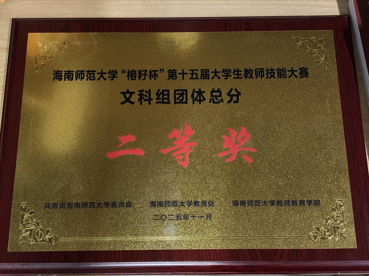 11月23日下午,海南师范大学“榕籽杯”第十五届大学生教师技能大赛顺利落幕。决赛现场,我院选手以扎实的专业功底、新颖的教学设计与从容的课堂呈现,充分展现了历史学专业师范生的专业技能与综合素养。历经多环节激烈角逐,我院最终斩获本次大赛文科组第三名、团体总分二等奖并获评“优秀组织奖”等多项殊荣!