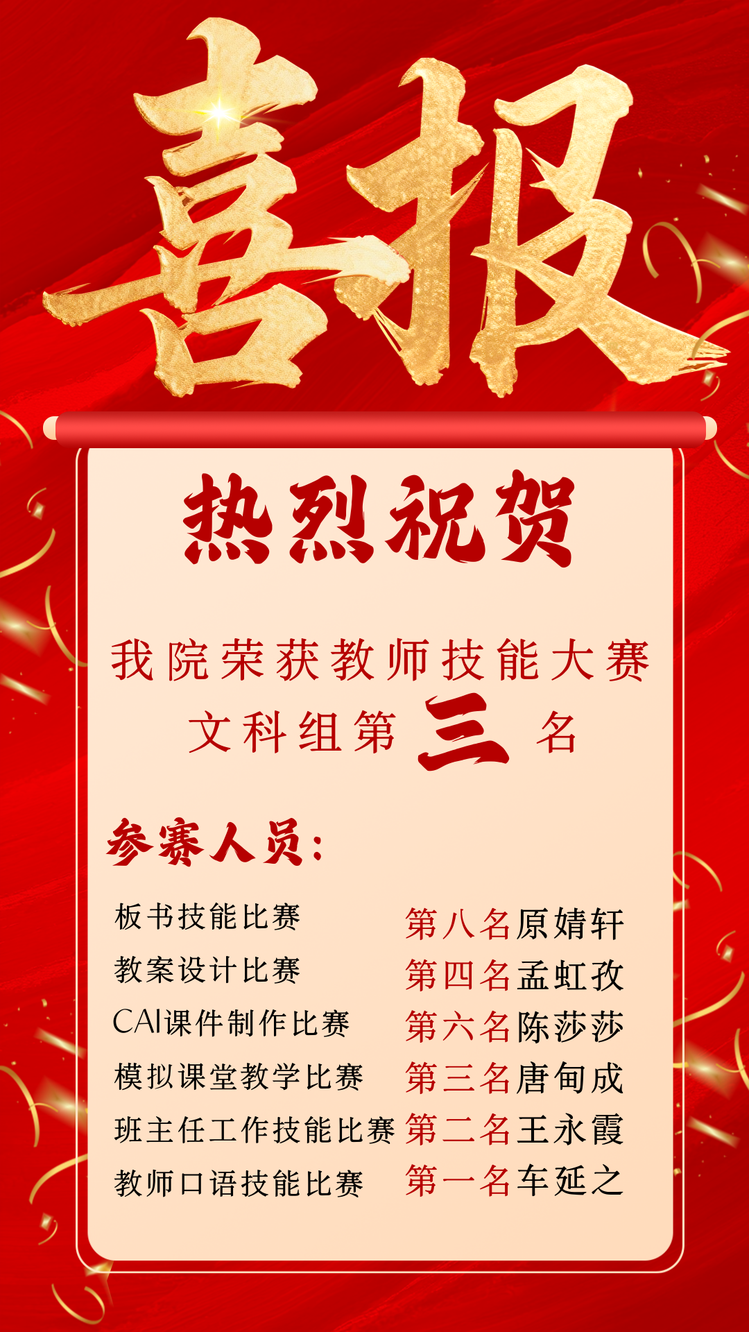 此次赛事的优异成绩,既是我院选手勤学苦练、精进技能的成果彰显,也是学院深耕师范生培养、注重实践能力提升的生动写照。未来,我院将以此次大赛为契机,持续强化教学实践育人环节,助力师范生锤炼过硬本领、涵养教育情怀,为培养更多高素质专业化中学历史教师筑牢根基!