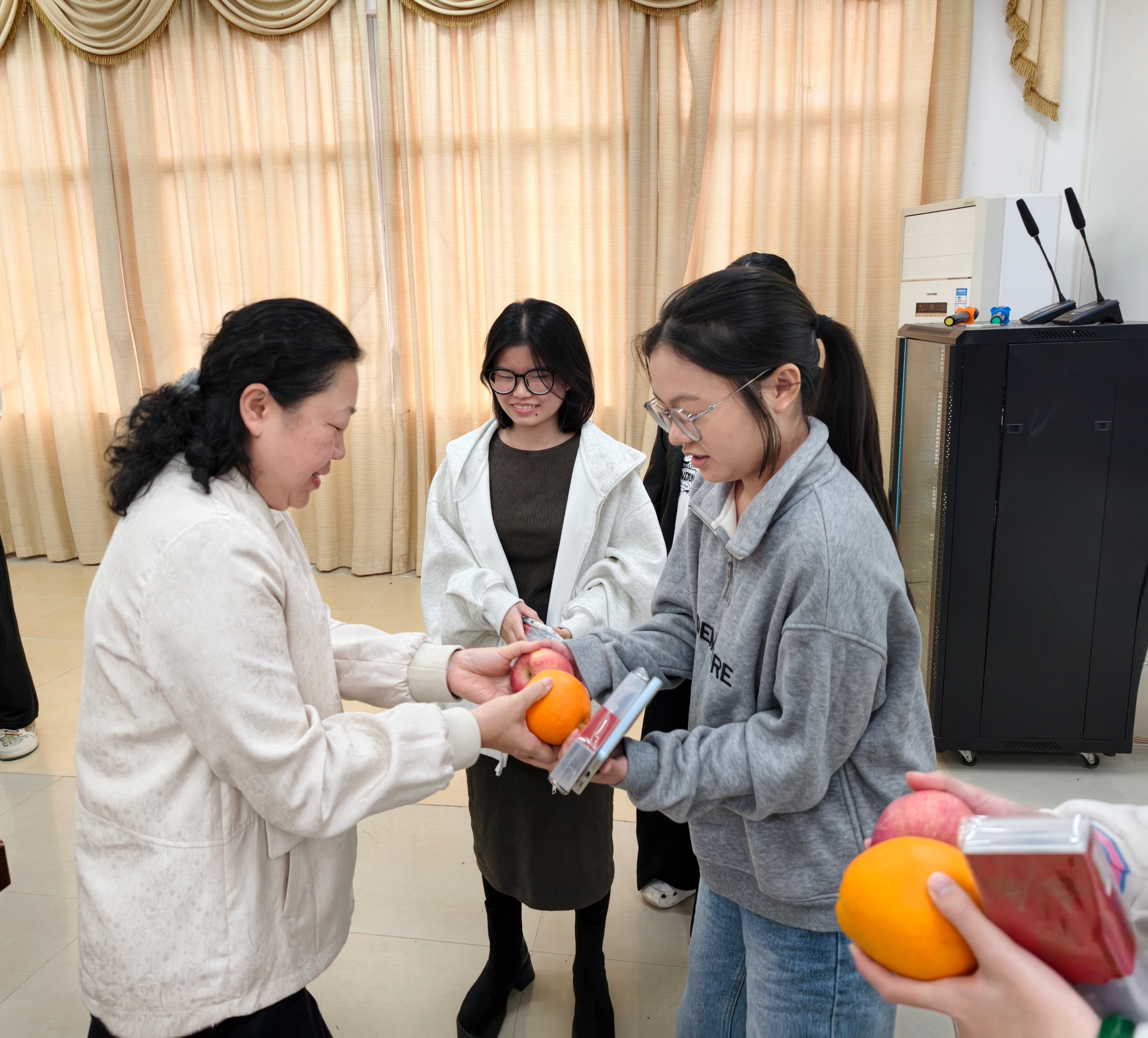 在温馨的氛围中,王国英老师将一份份沉甸甸的礼包送到每位学子手中,每一份礼包都凝聚着学院的牵挂,成为学子们前行路上的坚实底气。