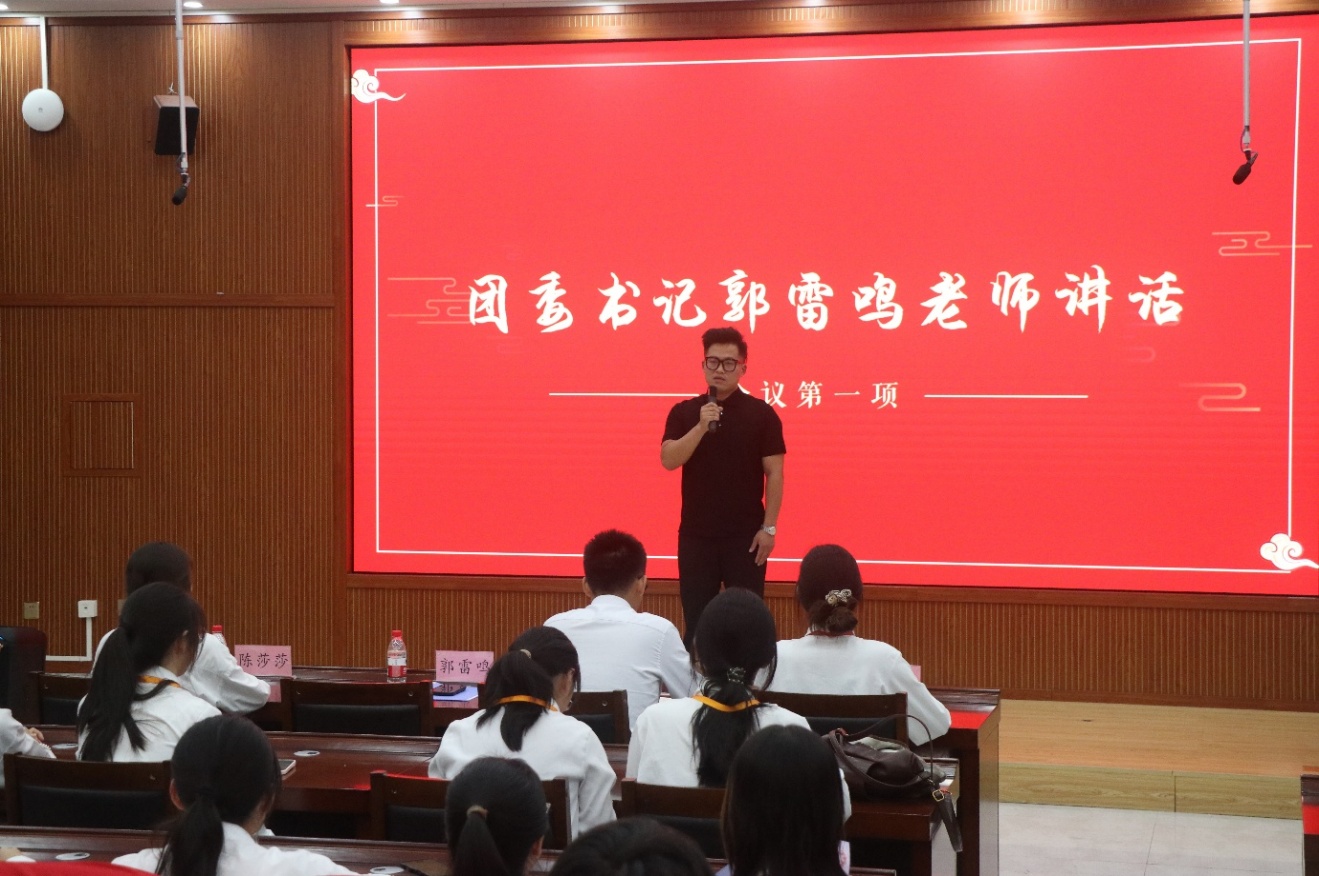 会上,学院团委书记郭雷鸣发表讲话,他要求大家紧密围绕学院发展各司其职开展工作,同时感谢各位学生干部对学院团委工作的大力支持,最后希望大家在服务同学的过程中不断提升自我,做到“踏实、虚心、团结、上进”,共同营造积极向上、团结奋进的学院氛围。