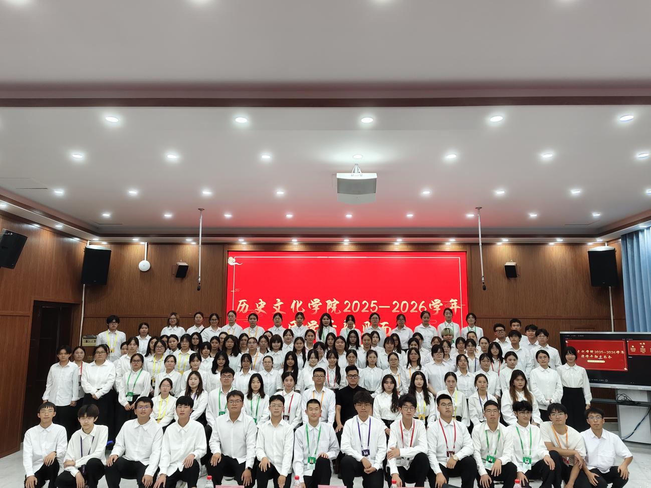 11月4日20时,海南师范大学历史文化学院2025-2026学年新任学生干部见面大会在马克思主义学院201报告厅隆重举行。学院团委书记郭雷鸣老师、团委副书记车延之、学生会执行主席陈莎莎、学生会主席团成员熊紫林、青年志愿者协会会长孟虹孜、刘珊珊,新媒体运营中心主任王永霞、学生自我管理委员会主任阎智鑫、路美琳,学工办总助理仲亦依及学院全体学生干部参加了本次会议。
