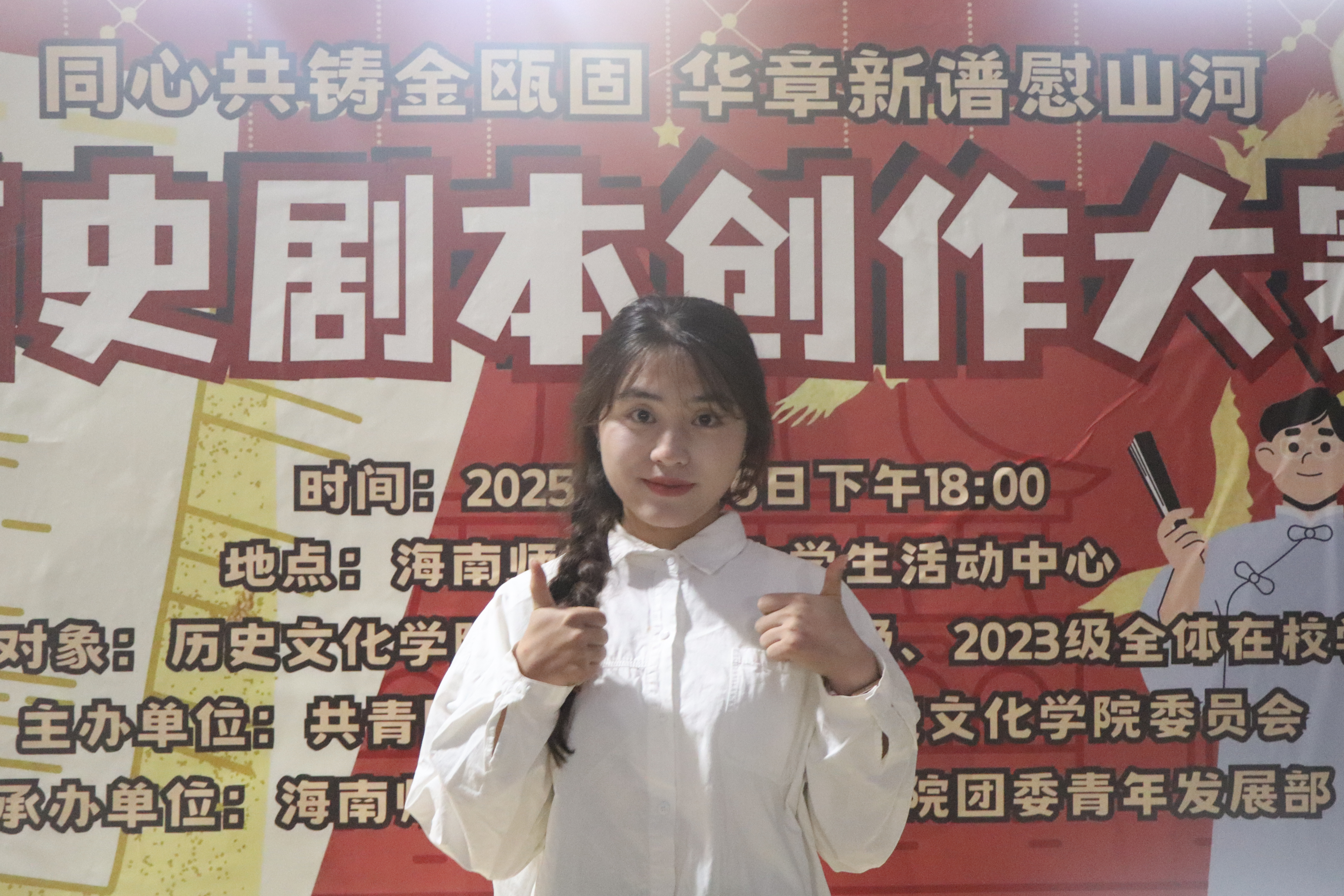 若把成长比作树的生长,那么陈莎莎的根首先扎在了历史的专业土壤中。她沉静钻研,综测名列前茅,获专业奖学金与“三好学生”称号。她注重知行合一,将历史学识转化为教学能力与创新实践,在海南省首届教师技能大赛、中国国际大学生创新大赛、职业规划大赛等赛事中屡获佳绩。
